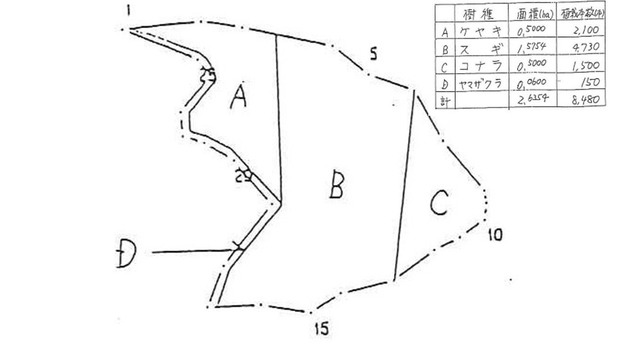 | 植栽樹種(針葉樹) | スギ | 4,730本 |