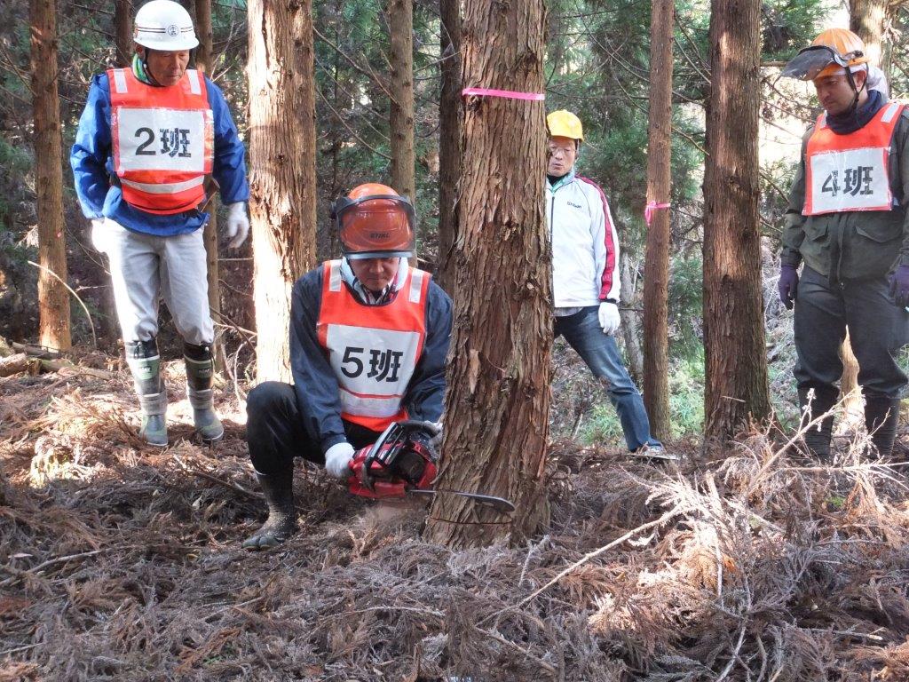 千葉県森林組合市原支所の皆様による間伐デモンストレーションです。