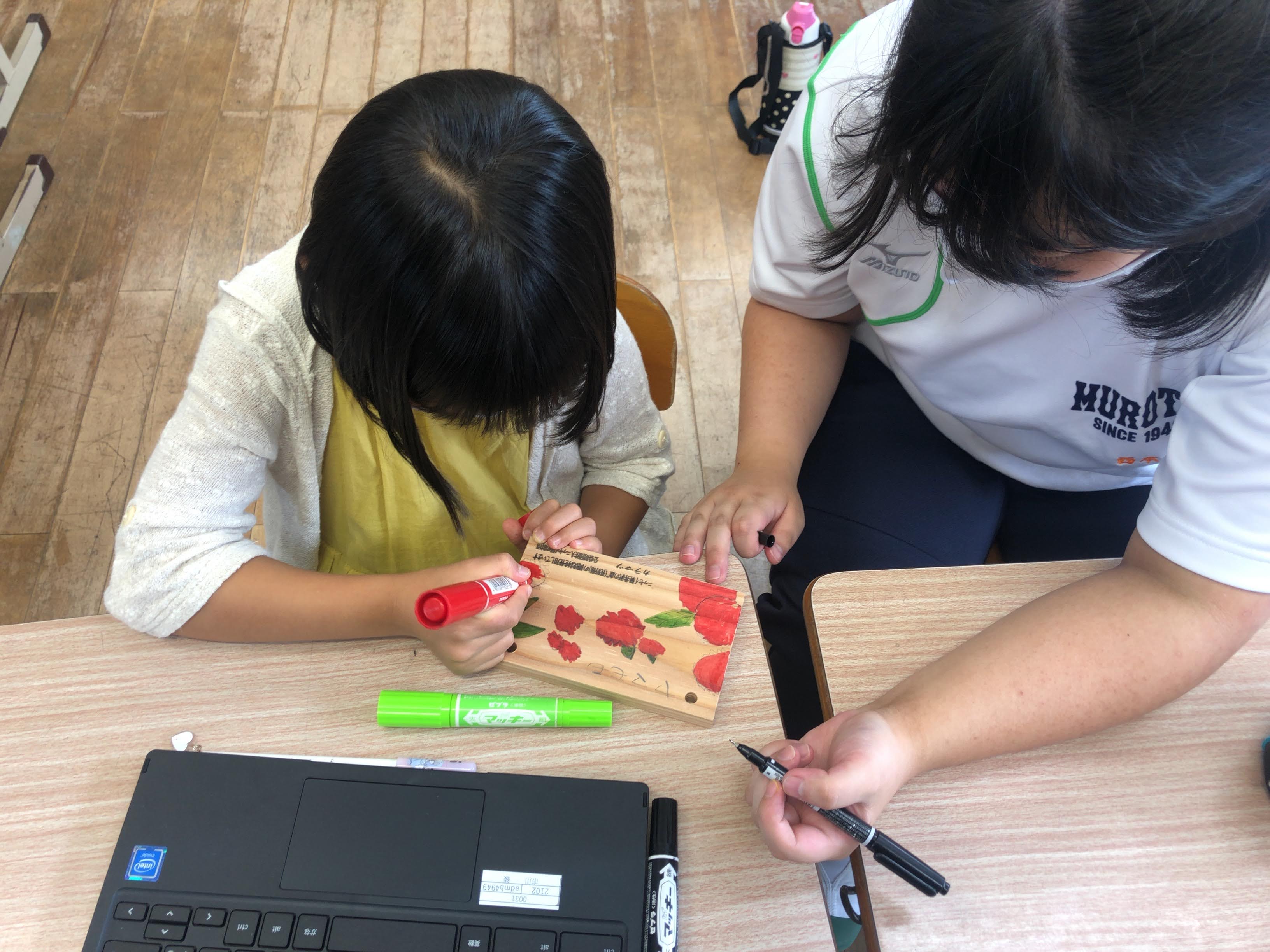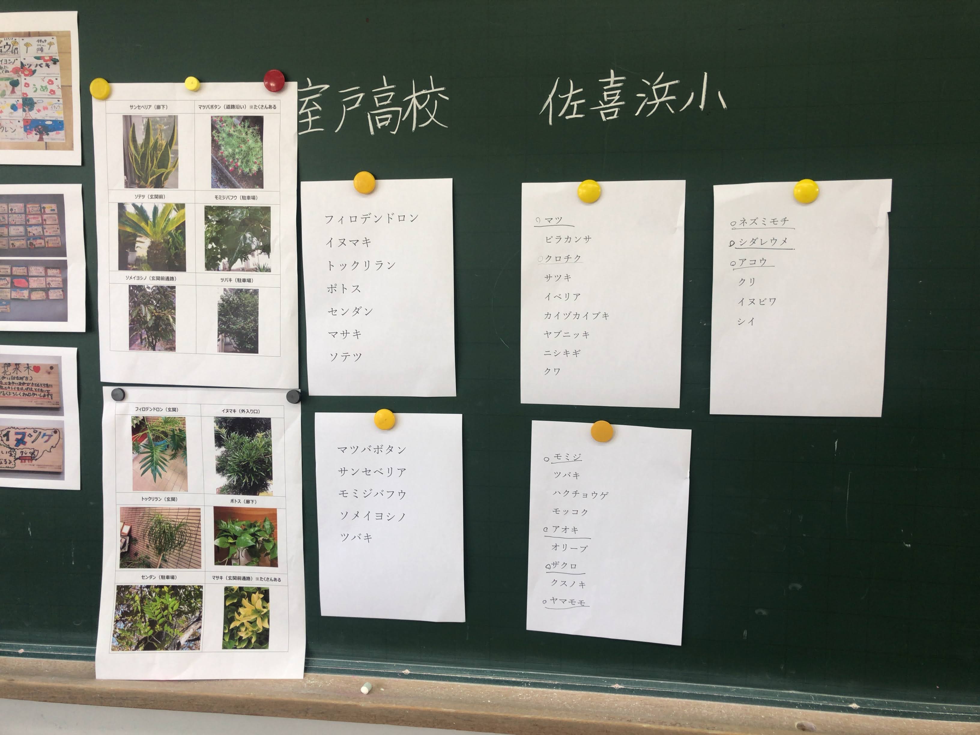 佐喜浜小学校とは夏休みにボランティア活動の一環として、小学校と一緒に樹木名プレートを作成しました。