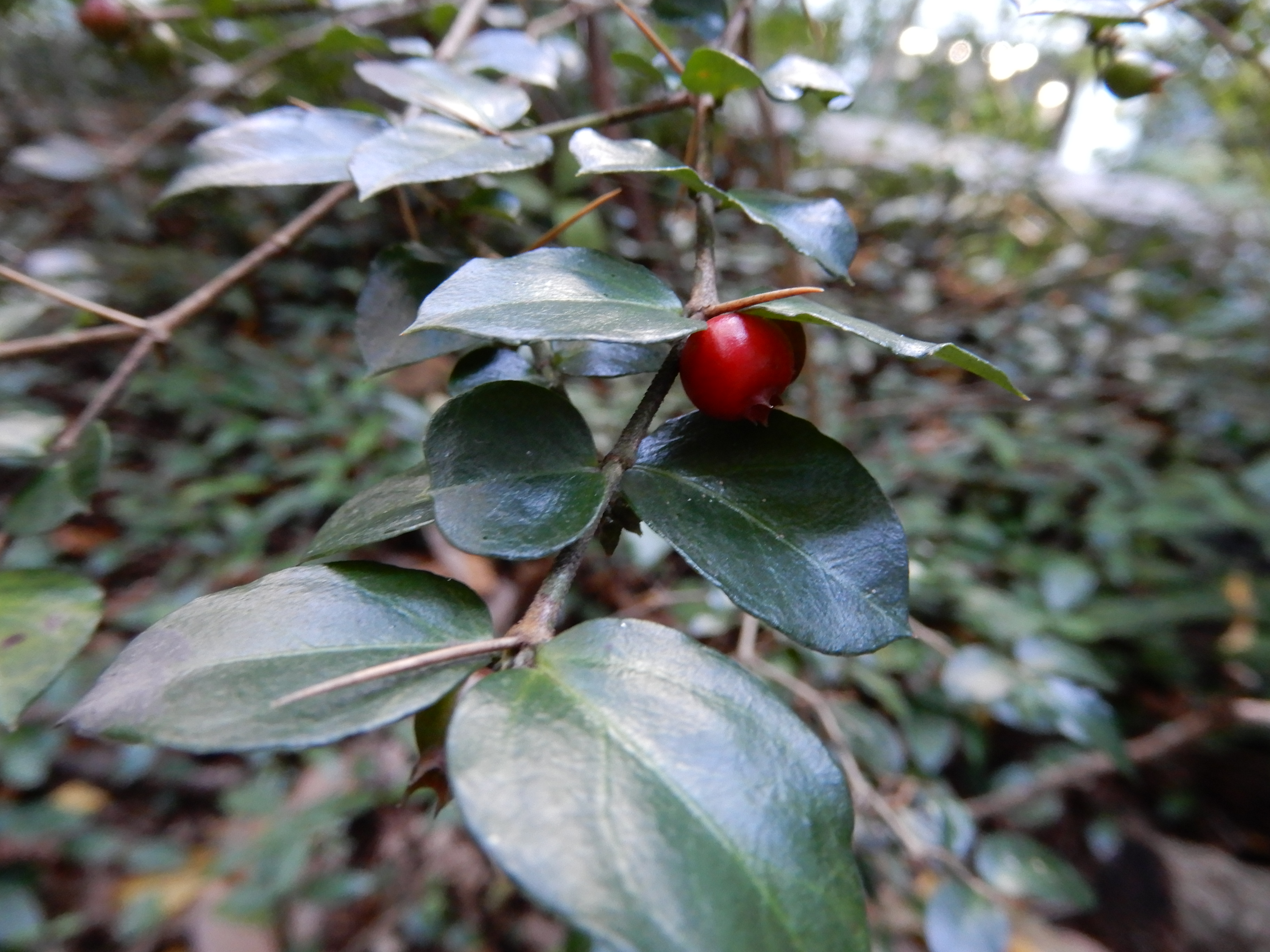 低木であることと、薄暗い樹林内で生育することから、5月に咲く白い花に気づく人は稀かもしれません。結実した果実はお正月の頃に赤く熟します。
