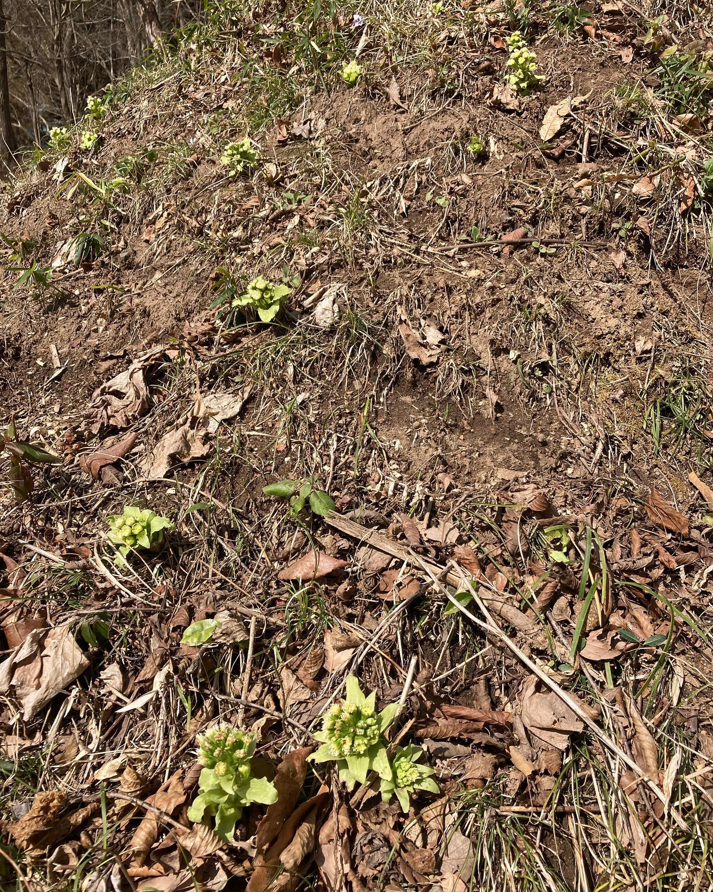 1枚目の写真のように一面に咲くフキノトウは春を感じられる素敵な風景です。山菜として舌で楽しむのは勿論のこと、成長の様子を是非目でも楽しんでみてください。