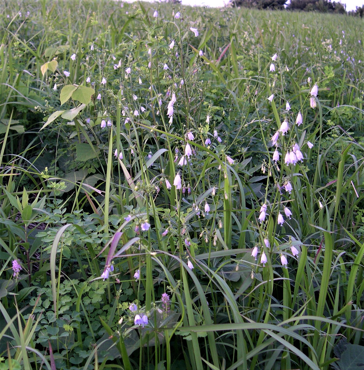 日本全土で普通に見られ、若芽はあくがなく、調理しやすいことから、山菜の王とも言われます。とは申しましても、地域によっては珍しい存在で、食べるのはちょっと遠慮したいですね。草丈が1m近くに伸びる株もある多年草です。初秋、1㎝余りの淡紫色で釣鐘状の花が下向きに沢山咲きます。ツリガネニンジンの釣鐘の所以です。ニンジンは根の形がチョウセンニンジンに似ていることからのようです。根は味噌漬け、粕漬けが美味しいという話も耳にしますが、都市近郊では、若芽を食べるよりもっと罪悪感がありませんか?