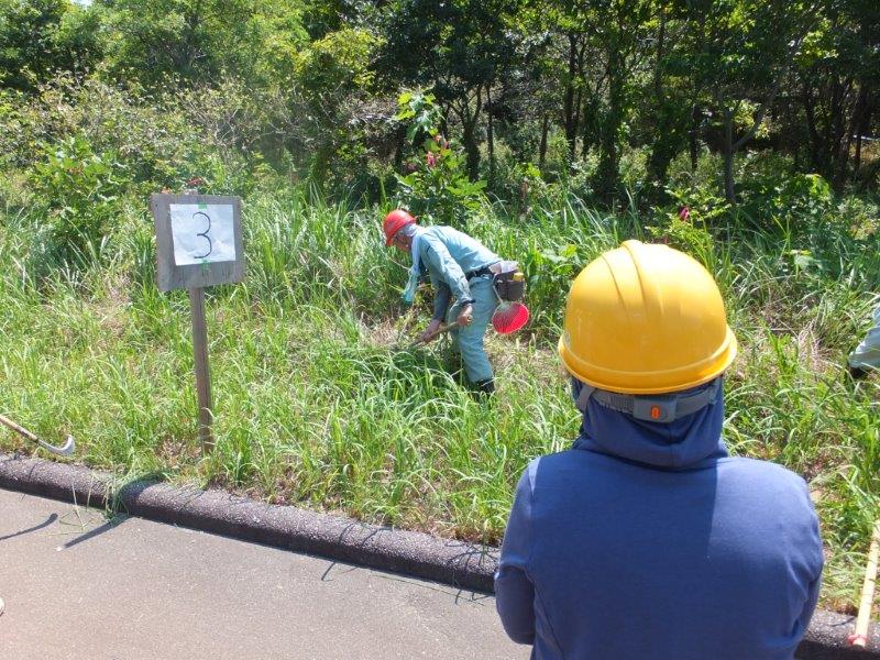 下草刈りの様子です。炎天下の中、心地よい汗を流しました。