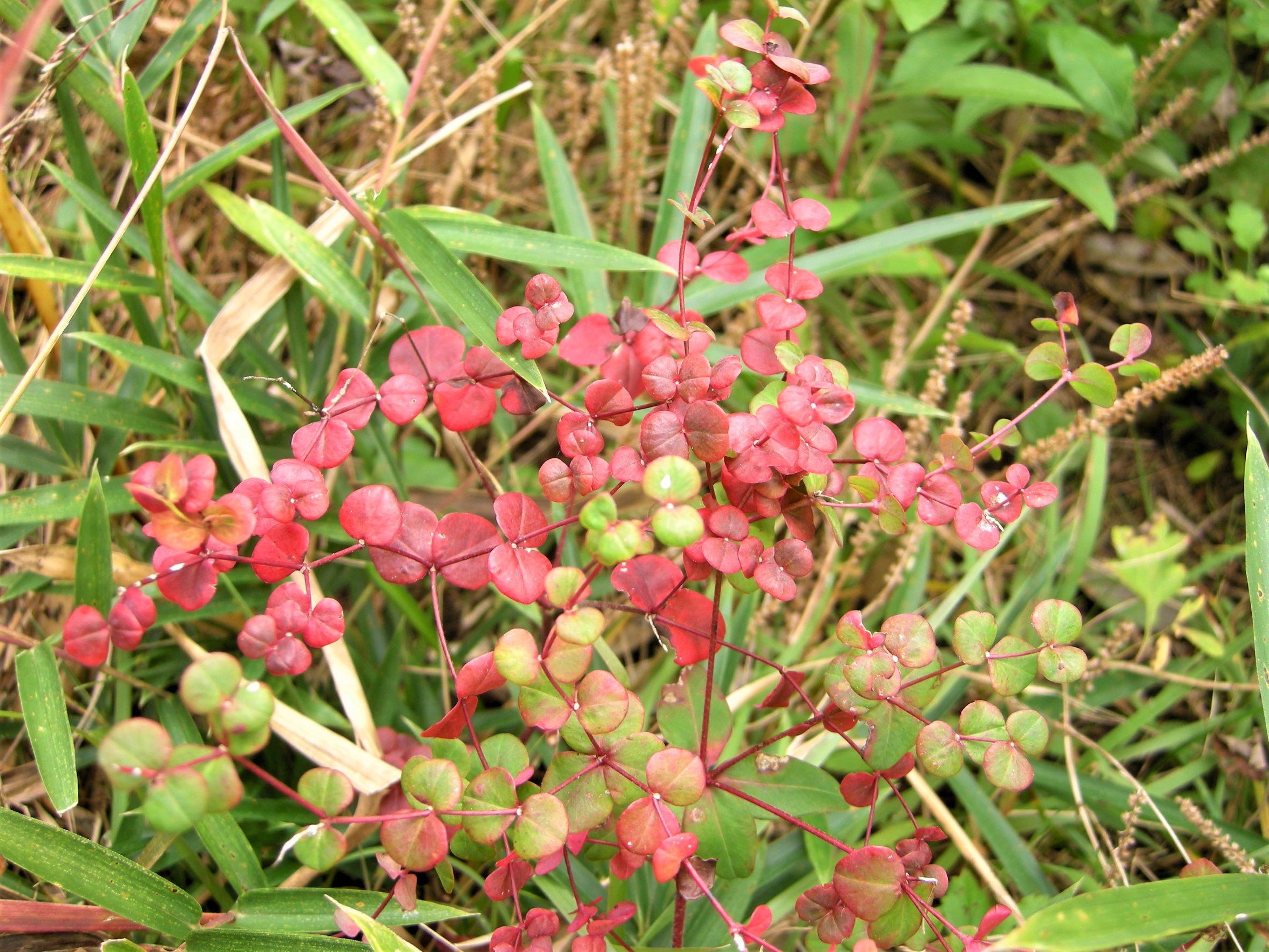 江戸時代には“枯れ野見”と言われて、草紅葉を楽しんだりしていたようです。ススキなどの原に出かけていたのでしょうが、そんな原の中で、タカトウダイの紅葉はひと際輝いていたかもしれません。