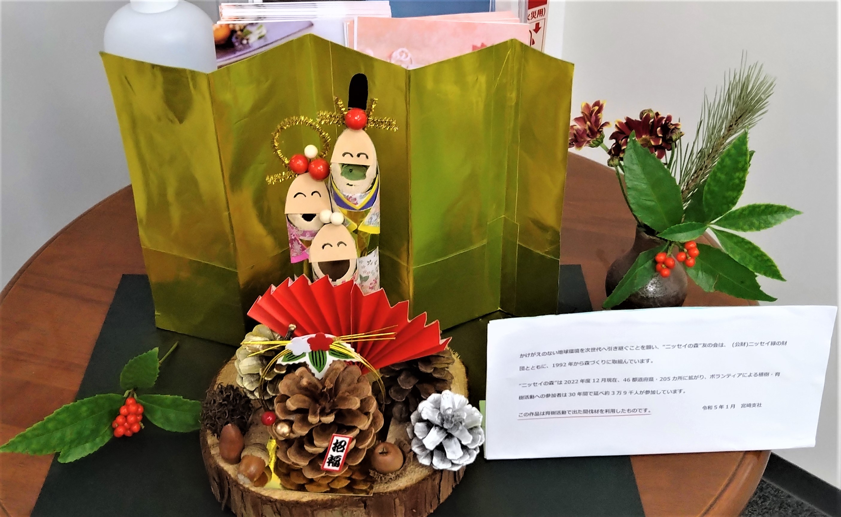 “ニッセイの森”の間伐材を活用して正月用竹飾りを多くの方々に作っていただきました