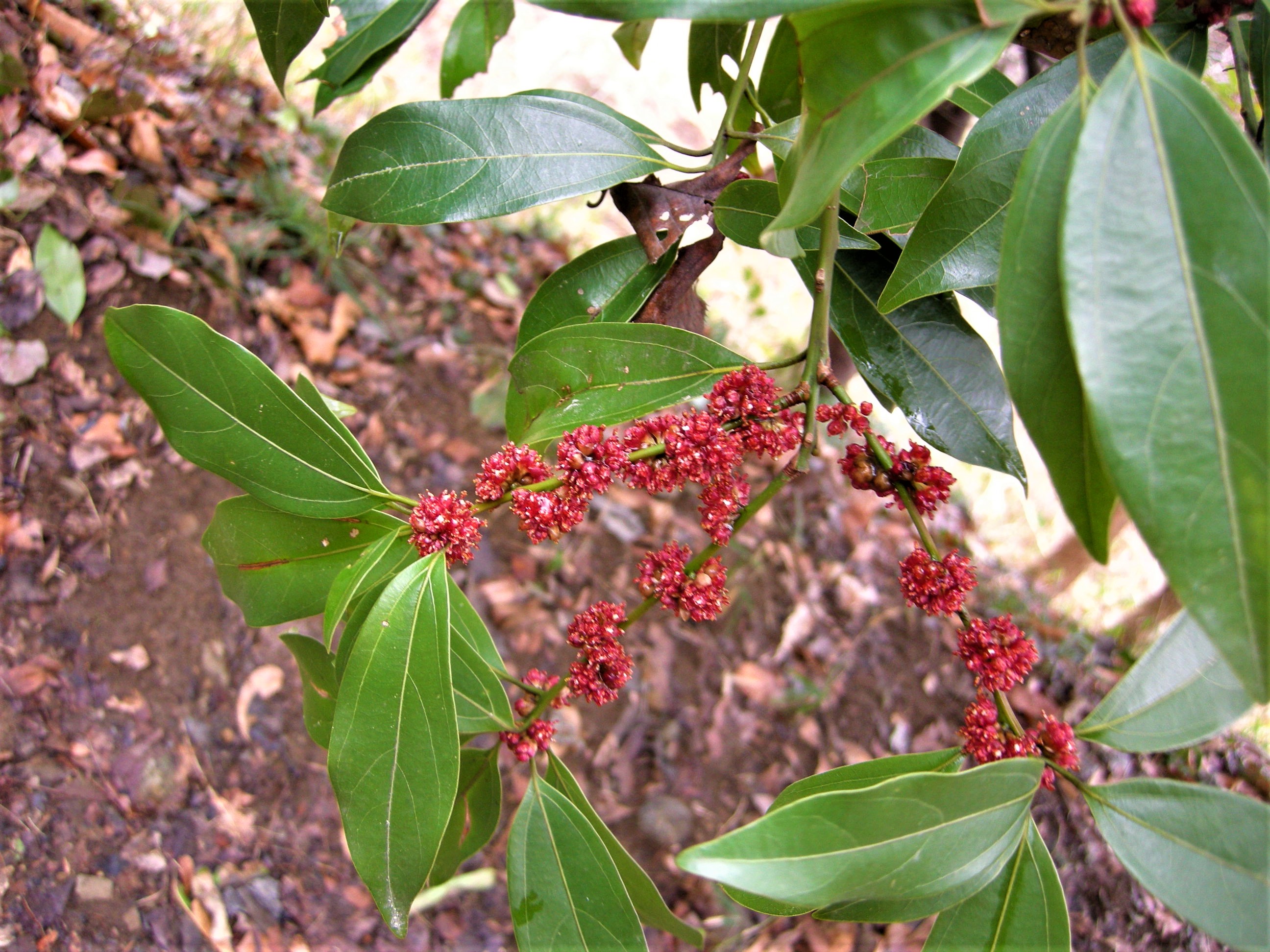 イヌガシ(犬樫)という名前ですが、クスノキの仲間です。イヌという名は役に立たないとか、ちょっと劣るという意味を込めた名前と言われることが多いようです。材が堅くて有用とされるカシ類(ドングリの仲間)に似てはいるが、材質が劣るということなのでしょう。