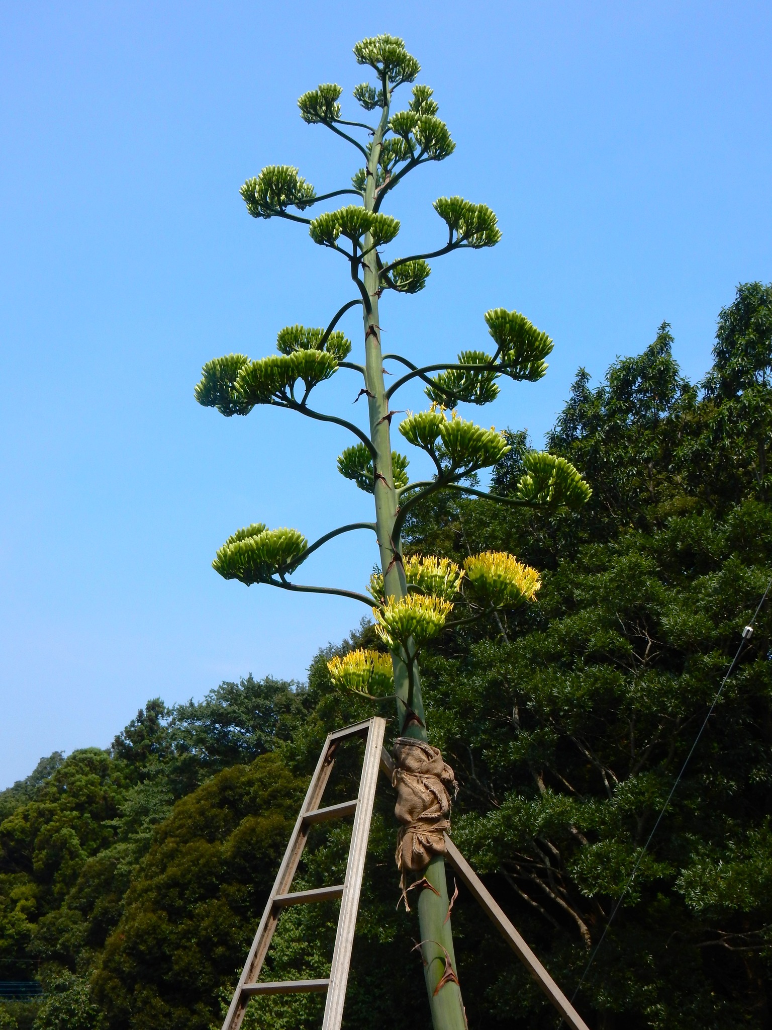 一世紀に一度、巨大な花茎を伸ばして花を開き、枯死すると言われてセンチュリー・プラント(century plant)と呼ばれることがありますが、実際には、日本では30~50年で開花したという報告があります。