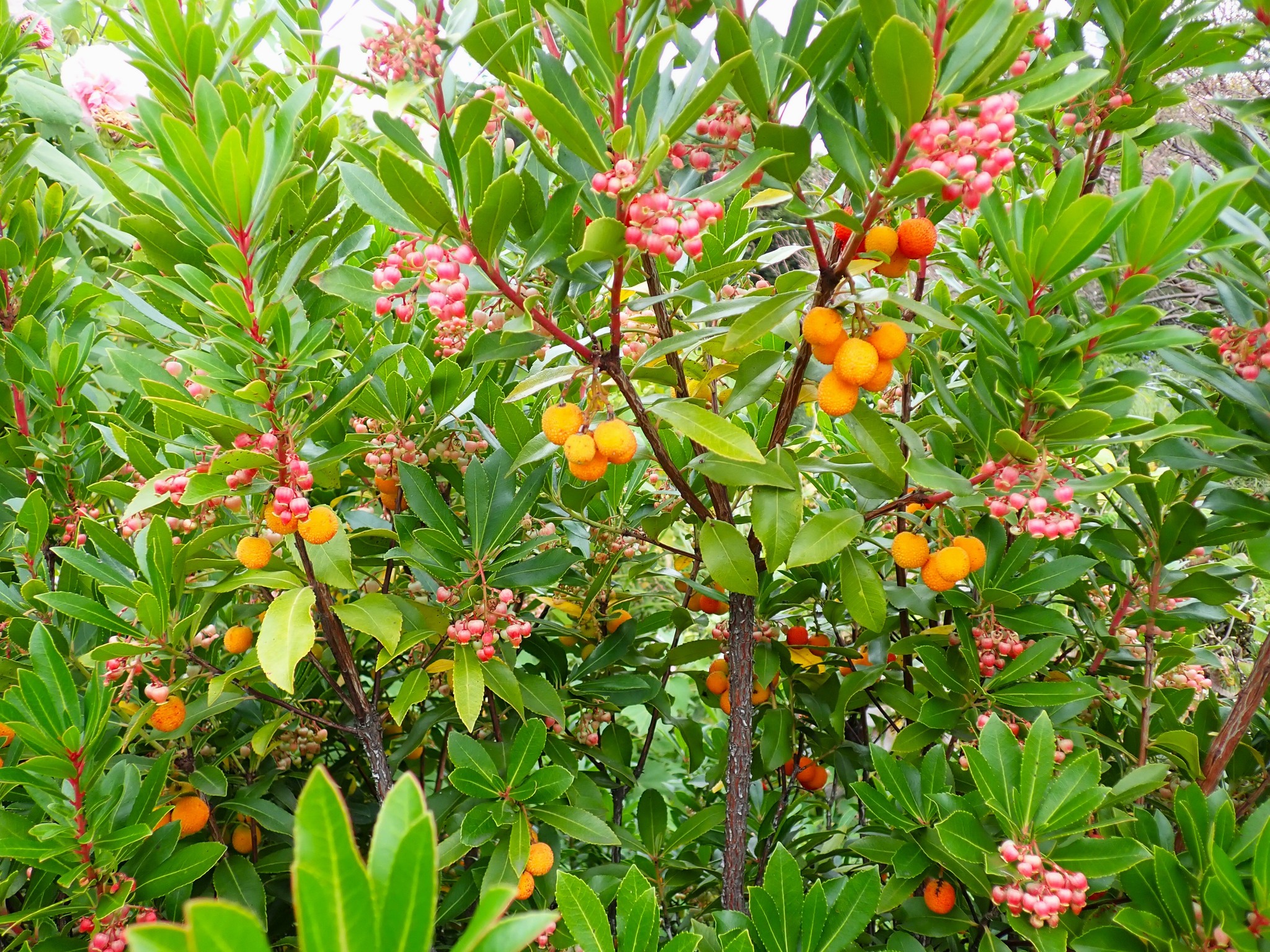 果実の姿がイチゴに似ていることからの名前で、英名 Strawberry Treeをそのまま日本語にしたものでしょう。