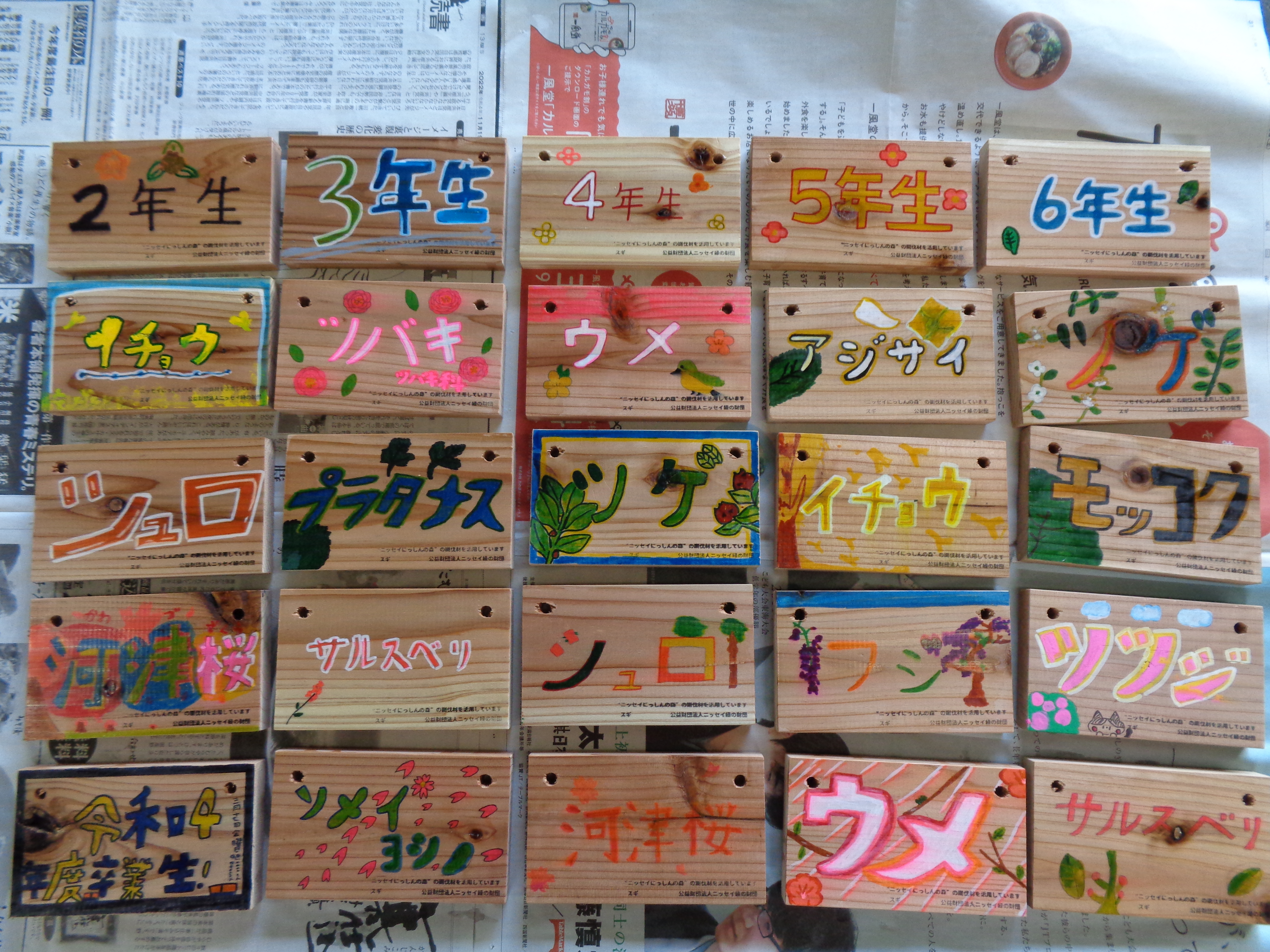 ・卒業記念品として作った自分のプレートが、学校にずっと残るのが嬉しいです。木もプレートもずっと大切にして欲しいと思いました。