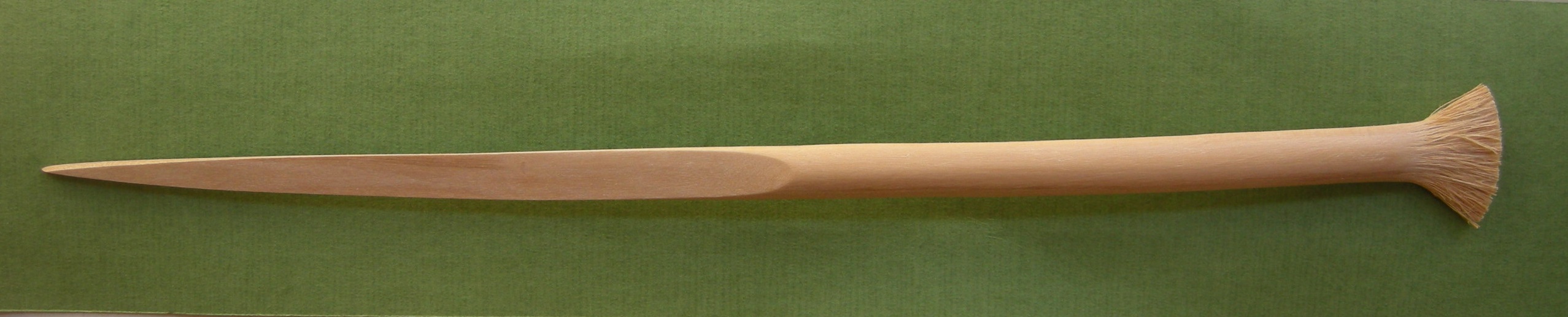 江戸時代の歯ブラシ、房楊枝の材としても知られています。一般庶民が使うものはヤナギの仲間で作られる安価なものでしたが、高級品はカンボクで作った房楊枝でした。房の反対側は薄く削がれて先が尖っています。尖った先端は歯間ブラシ、薄く削がれた部分は舌苔を取るために使われていたようです。(ふさようじを総楊枝の漢字で表すこともあります)