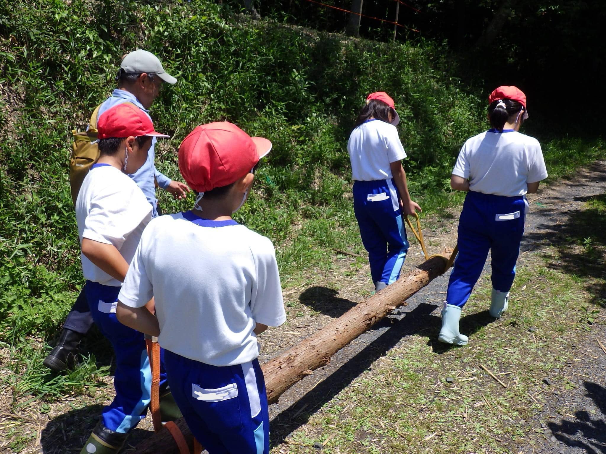 活動が終わる頃に切った枝や竹等、たくさんのお土産を抱えている姿が印象的でした。