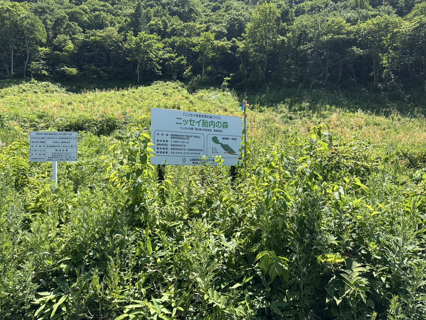 ”ニッセイ胎内の森”は、2024年に国と分収造林契約を締結して209箇所目となった森で、道の駅胎内から車で約5分に位置しています。