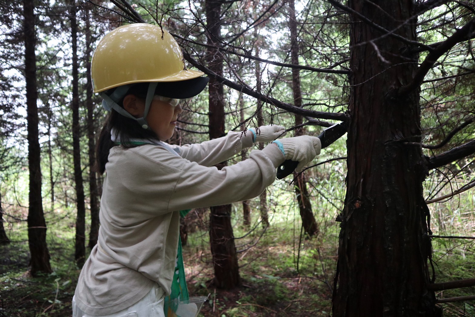 静岡県富士市にある"ニッセイ富士の森"にて、枝打ボランティアを開催しました。