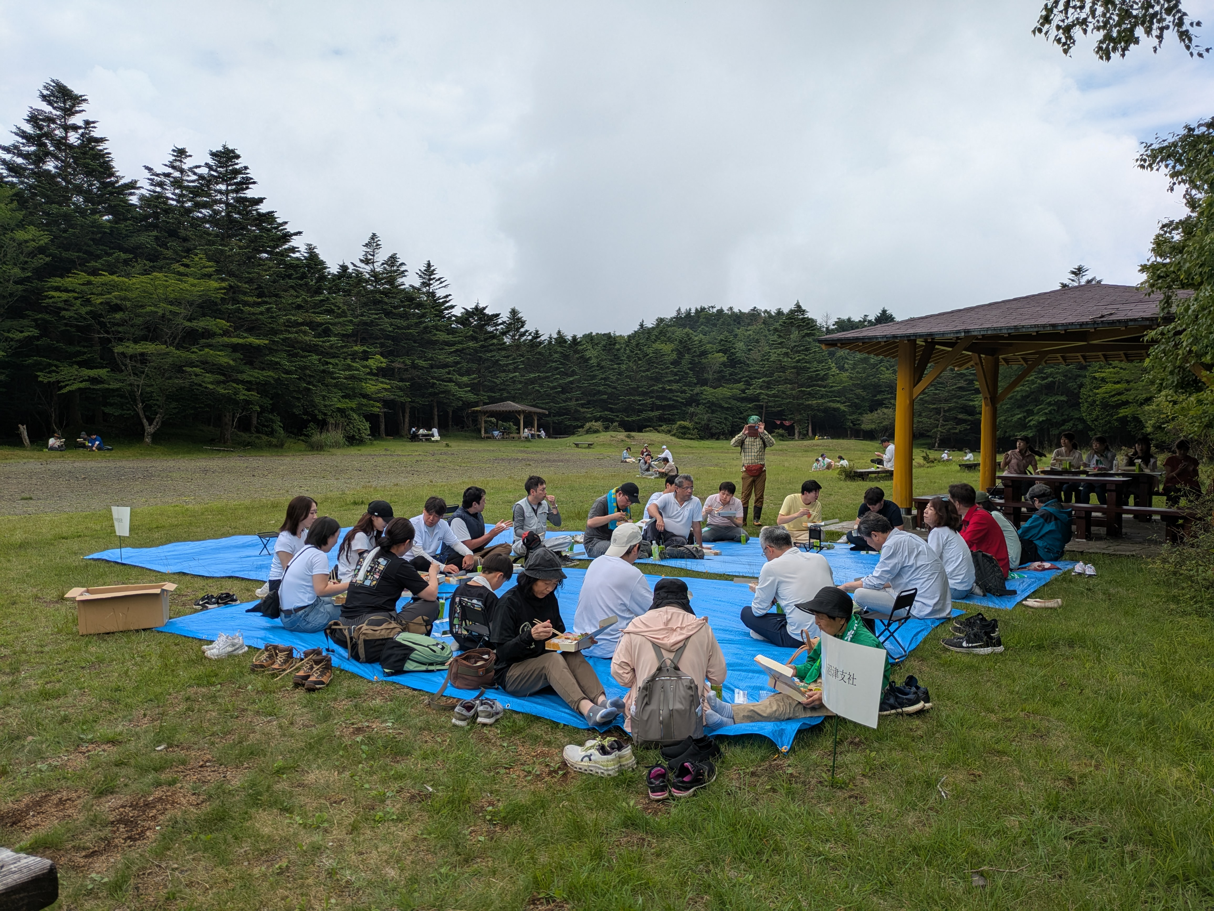 ボランティア後には近くにある水ヶ塚公園の広場にて、富士山を眺めなが昼食をいただきました。