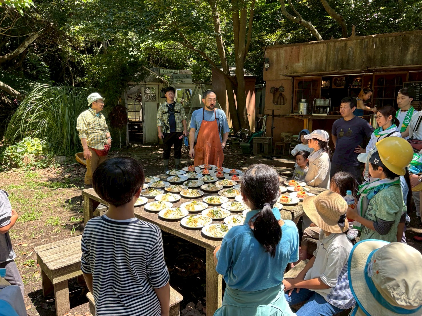 また、捕獲したザリガニは、近くの自然食レストランで調理していただき、美味しく頂きました。希望者のみですが、エビみたいで美味しい!と評判でお代わりする子どもが続出していました。