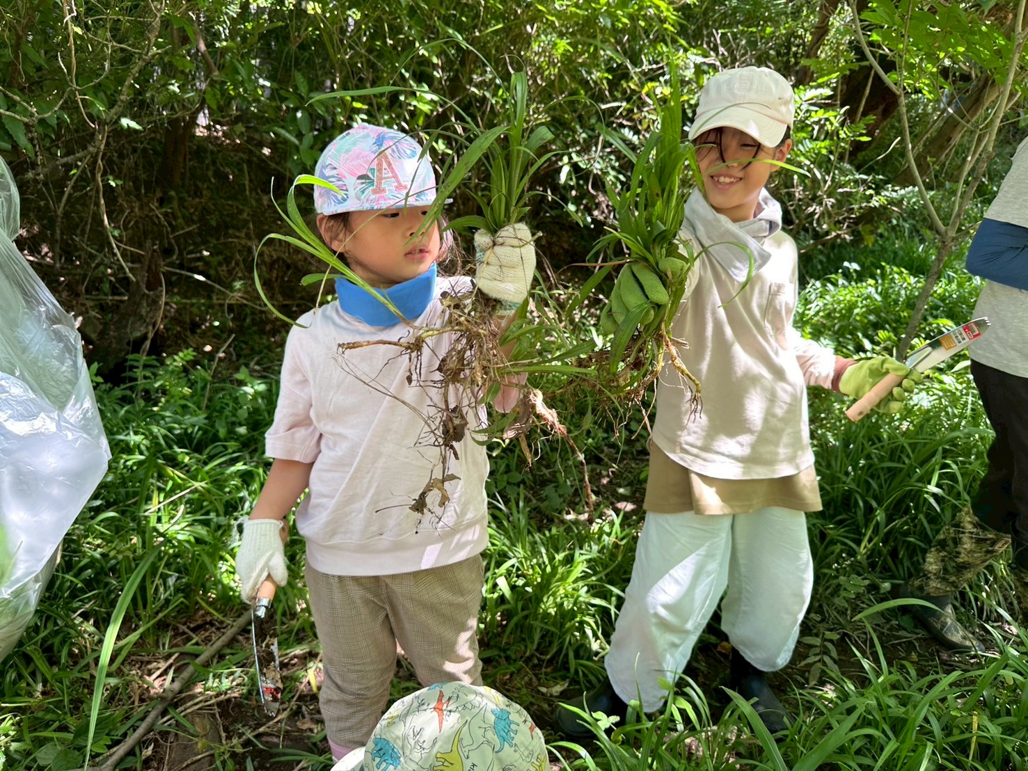 外来植物の除去では、ツルニチニチソウ・トキワツユクサなどの外来種見本を見ながら、除去する外来種を探し当てるのに熱中していました。