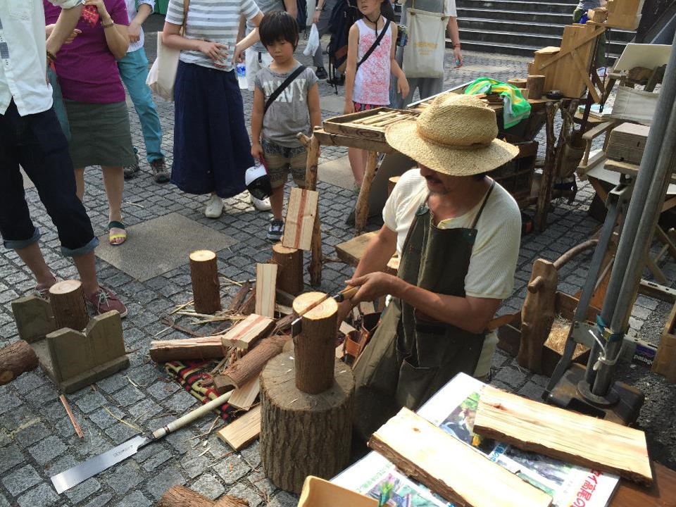 昨年度に引き続き、長野修平氏が講師のネイチャークラフトワークショップでは、”ニッセイ高尾の森”において間伐ボランティア活動を行った材を活用し、MY箸・ウッドプレート・ペン立てを2日間を通じて取り組みました。
