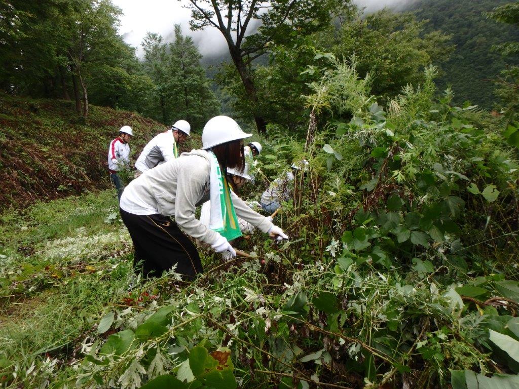 8月27日(土)“ニッセイ桂湖の森”にて、“ニッセイの森”友の会(日本生命保険相互会社富山支社)を中心とした総勢約80名にて育樹活動(下刈)を実施しました。