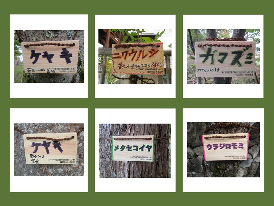 施設内を散策し樹木の学習をしながら樹木名プレートを設置する活動を通して、児童たちが生物多様性を感じることができたとの感想をいただきました。