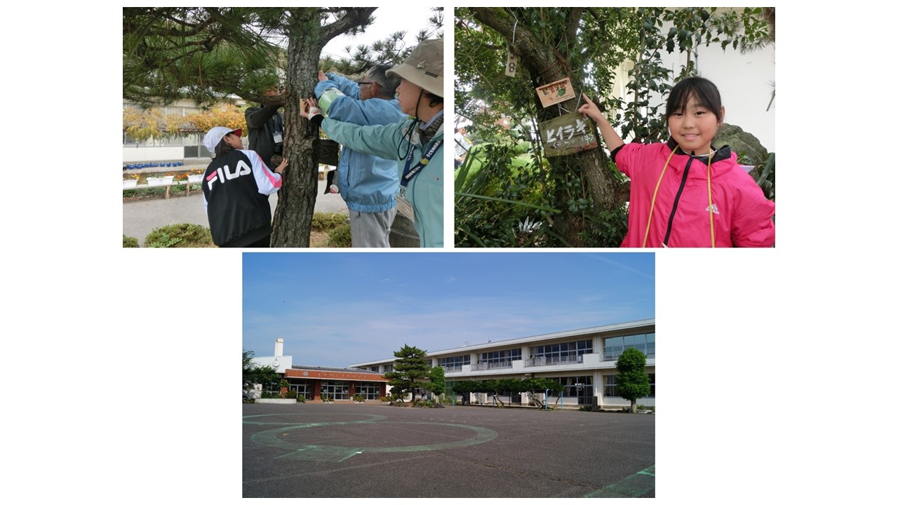 校内の樹木を観察し図鑑や本などで調べ各自書いたプレートの樹木はマイツリーになり、作業中はみんな笑顔で自然に親しむ良い活動になりましたとの感想をいただきました。