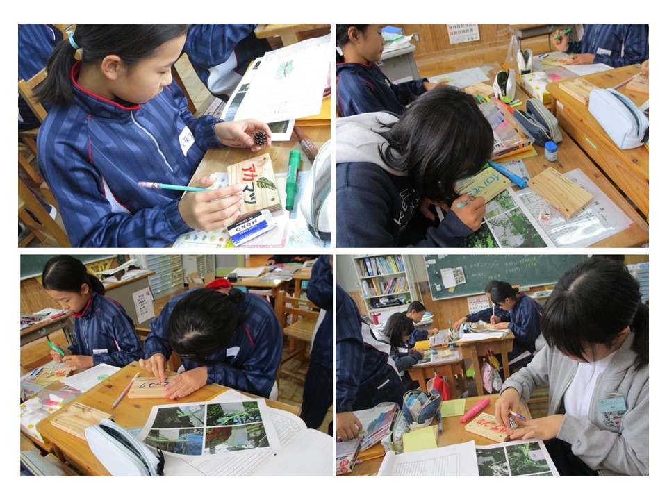 総合的な学習の時間で身近な自然環境である森林をテーマに、森林の役割や森林を育てる仕事について調べ学習を進めてきたので、学習のまとめとして学校の樹木に目を向けプレートの作成・設置をしました。
