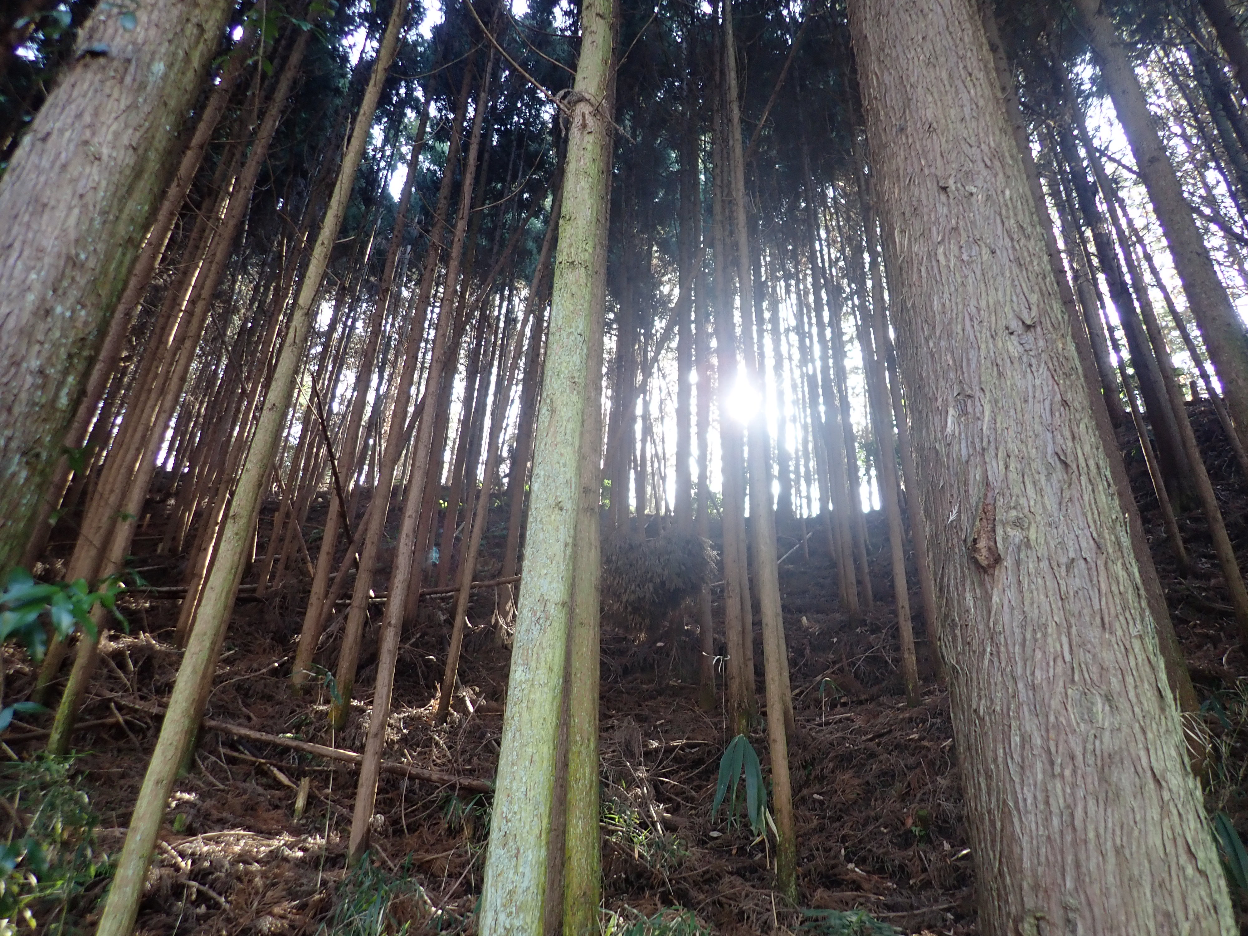“ニッセイ東阪の森”のボランティア活動予定地周辺の様子です。植樹から約40年経過したスギの森です。十分な安全管理の下で間伐ボランティアを実施する予定です。