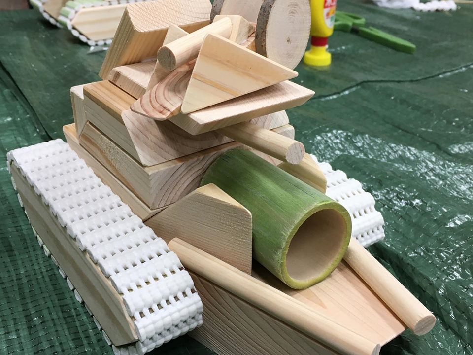 木材を選び、欲しい形がなければ自分で切ったりしながら組み立て、戦車や船、飛行機等の作品を制作しました。