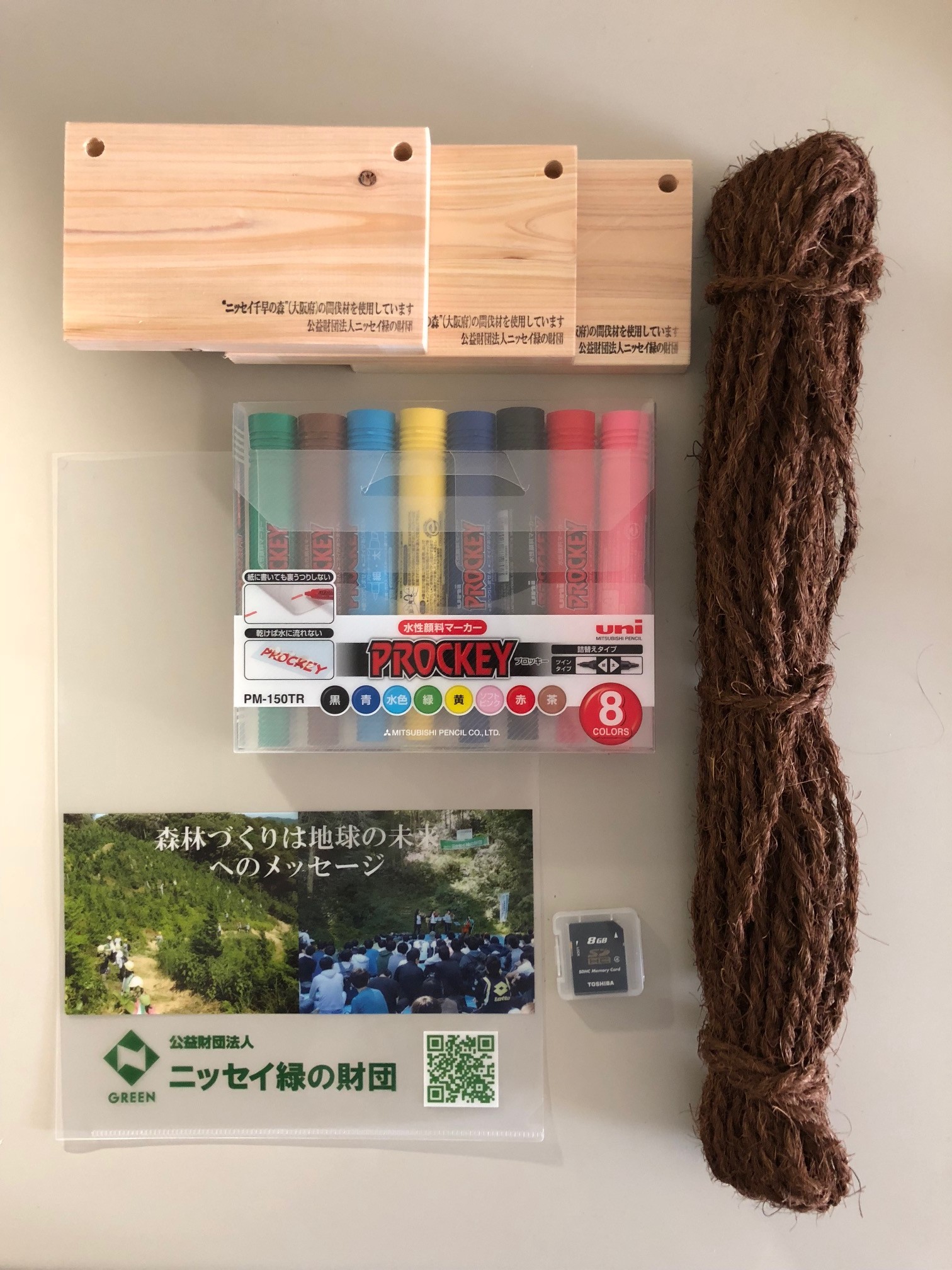 当活動は、SDGs達成に貢献するESD(Education for Sustainable Development)を推進している『ESD活動支援センター』の後援を受けております。活動参加校には「森林を愛する人づくり事業 協力校 記念プレート(写真①枚目)」を送付させていただきます(在庫に限りがございますので、先着順となります)。当プレートを学校の玄関等に置いていただくことで、ESDに関する取組みがPRできるようになっております。