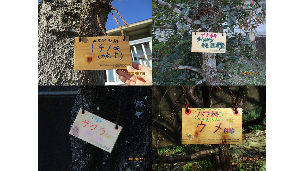 1月10日(金)に3、4年生と先生に樹木名プレートの作成と設置をしていただきました。