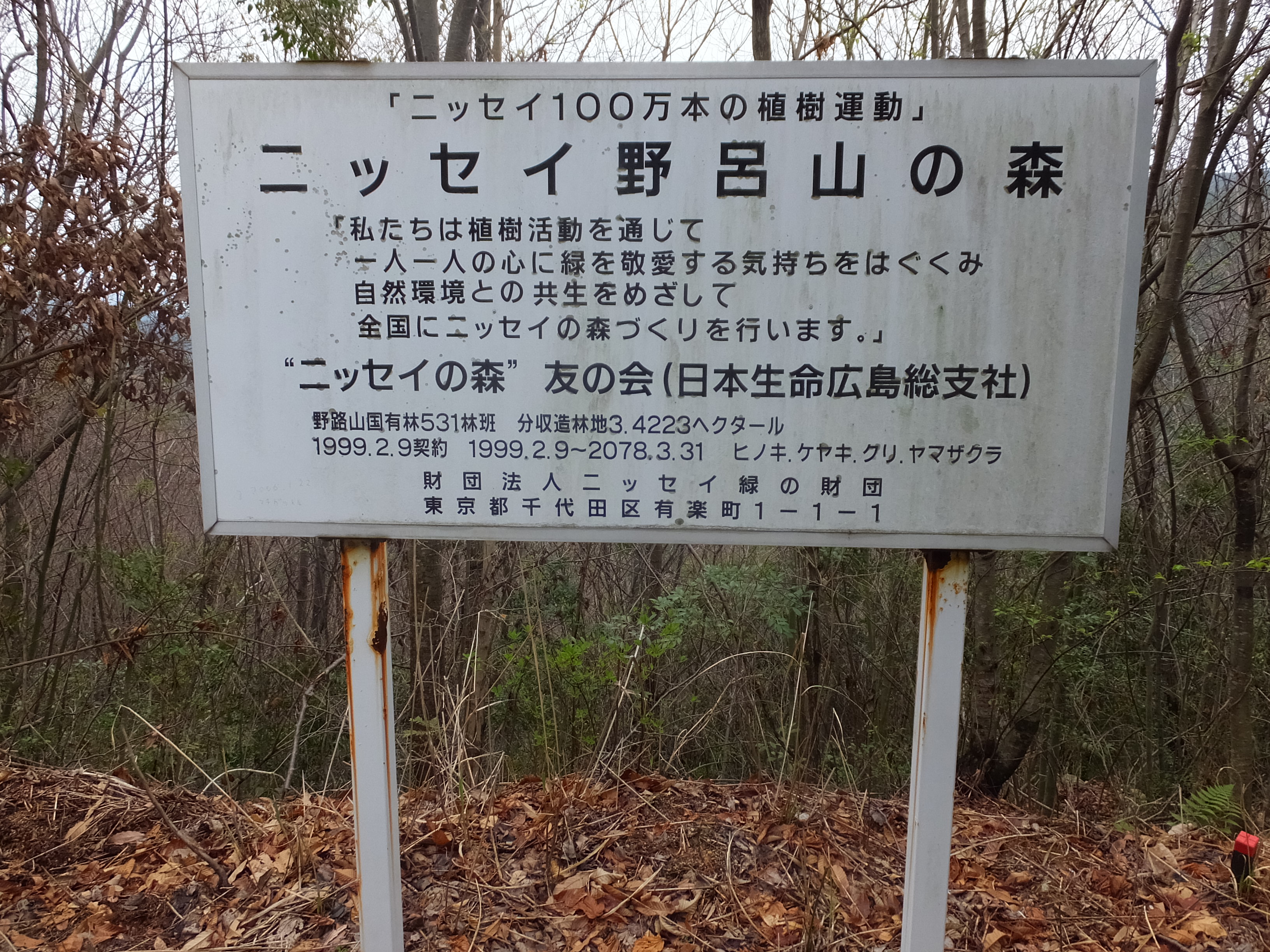 ④“ニッセイ野呂山の森” 植樹年:1998年 植栽樹種:ヒノキ、ケヤキ、ヤマザクラ、ヤマグリ