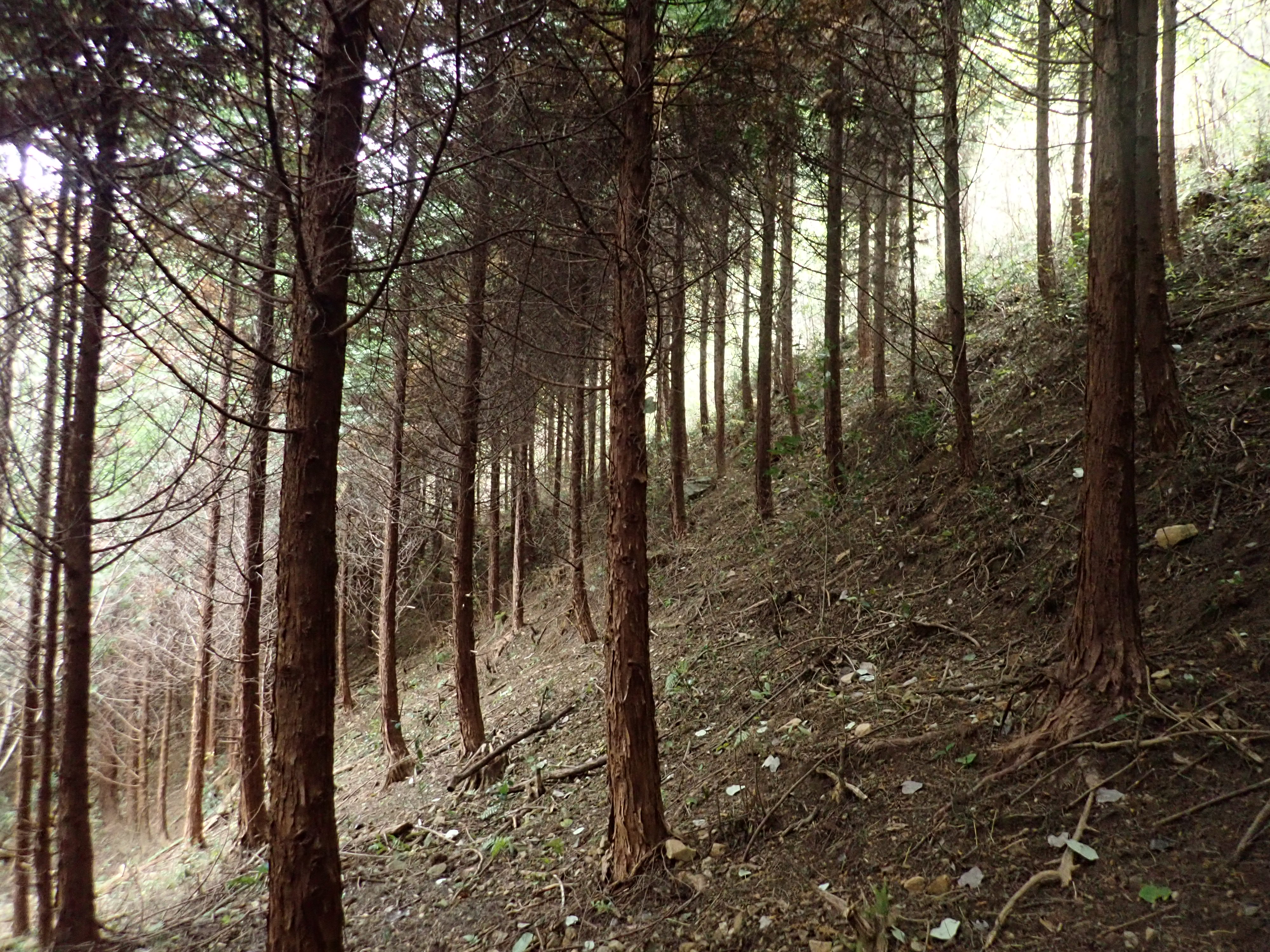 夢すき公園(親子孫水車)から倉敷市方面へ車で30分ほどの所に位置しております。平坦な森で、順調に成長しており、針葉樹は大きなものでは直径20センチ/樹高18メートル程度になっています。
