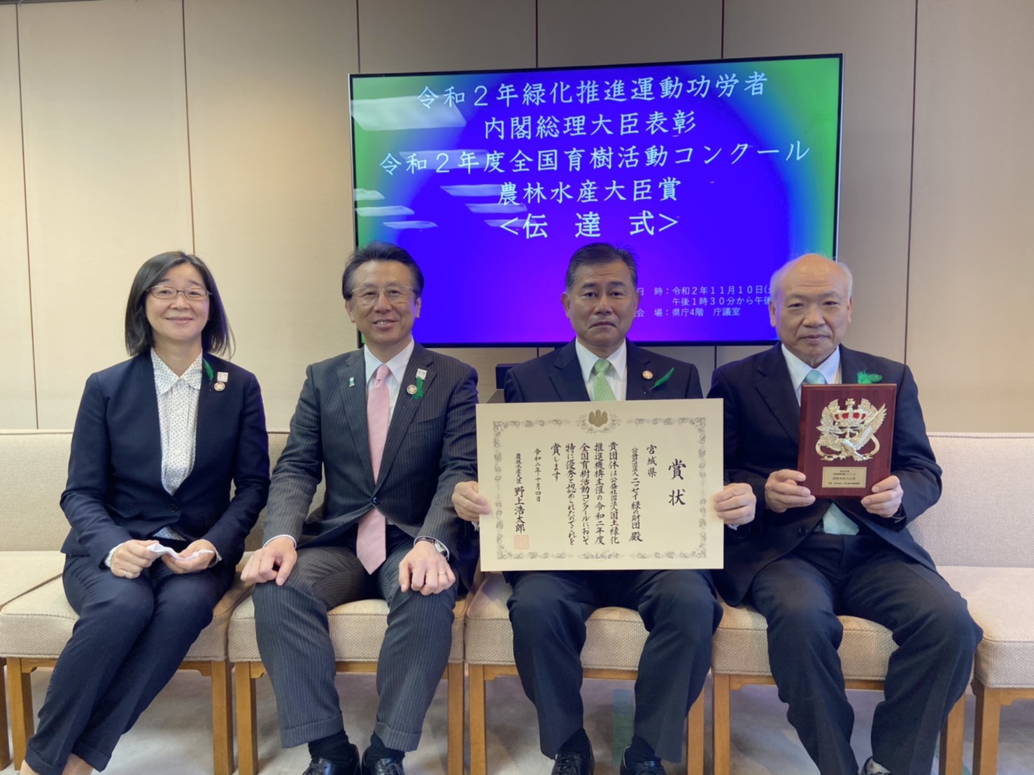 本日、宮城県庁にて令和2年度全国育樹活動コンクールの表彰伝達式が行われました。