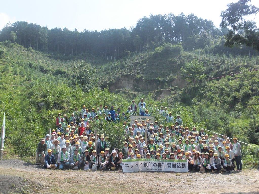 9月14日(土)に福岡県朝倉郡筑前町の”ニッセイ筑前の森”にて、”ニッセイの森”友の会(日本生命保険相互会社福岡総合支社・久留米支社)の参加者169名及筑前町の皆様26名を中心とした総勢230名にて育樹活動を実施しました。