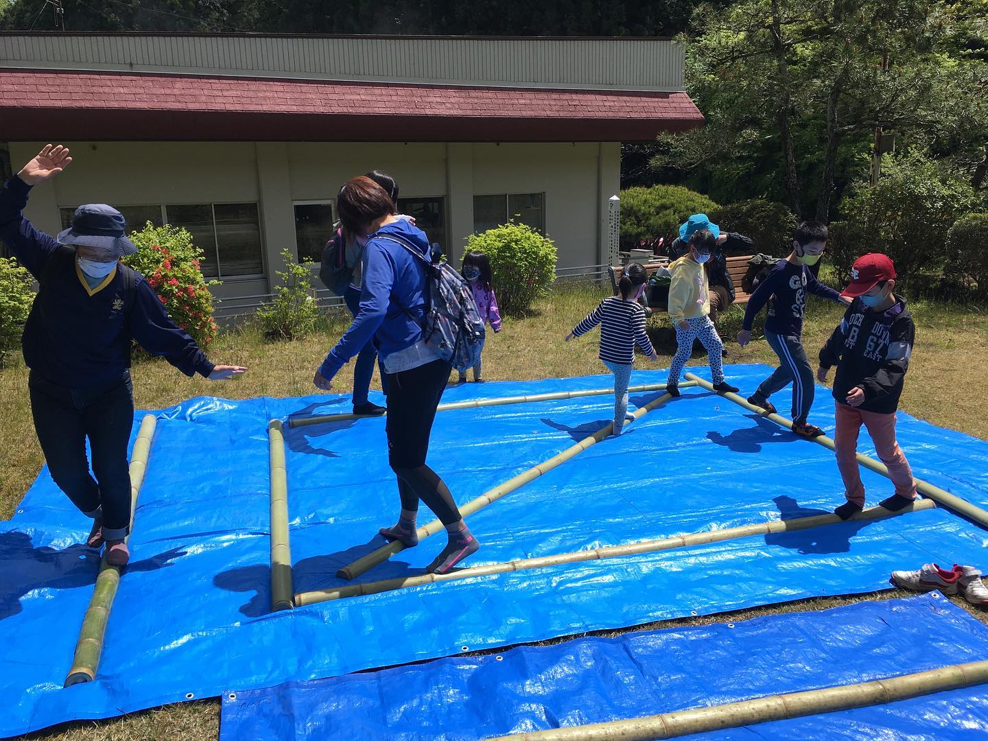 最後は子どもだけではなく、保護者やスタッフも混ざって、竹の上に乗り続ける「バランス感覚大会」も開催されました。