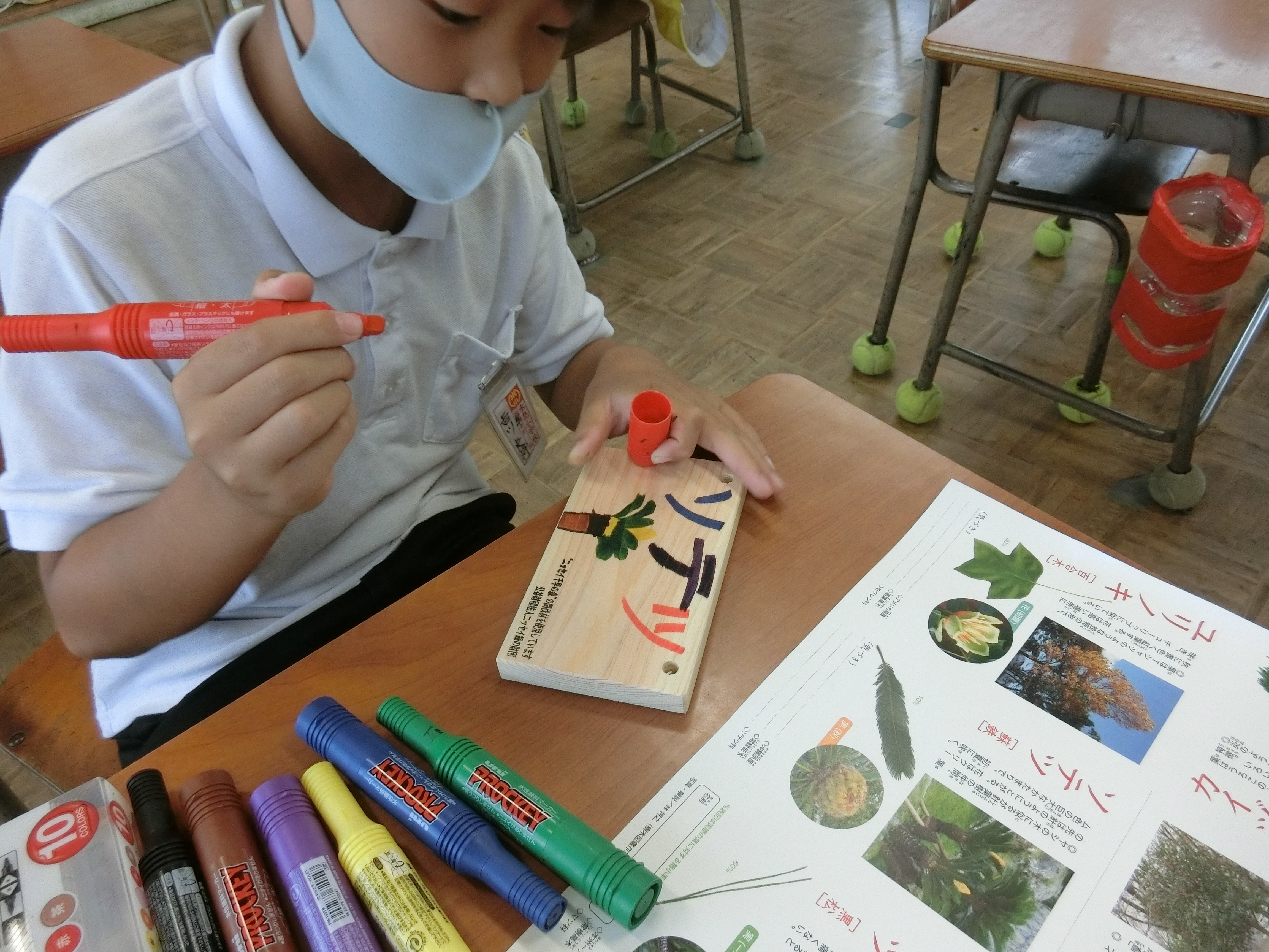 倉敷市立水島小学校の児童の皆さまに、「水島小学校の木のしおり」を使った自然観察、「樹木名プレート」の設置に取り組んでいただきました。
