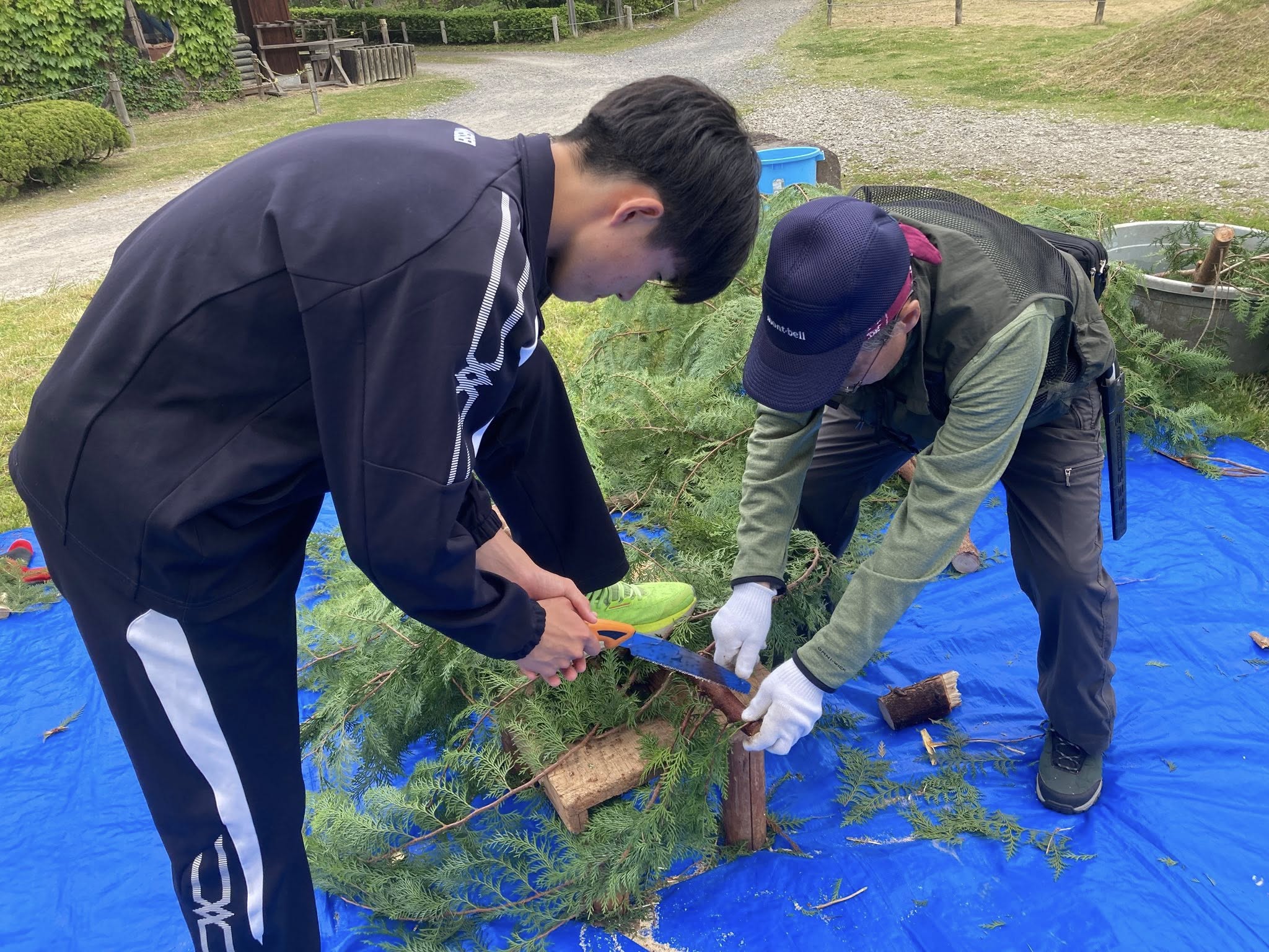 宮城県森林インストラクター協会の方々の指導のもと、遊歩道づくりや竹林整備、枝打ち除伐といった森林整備作業を体験しました。
