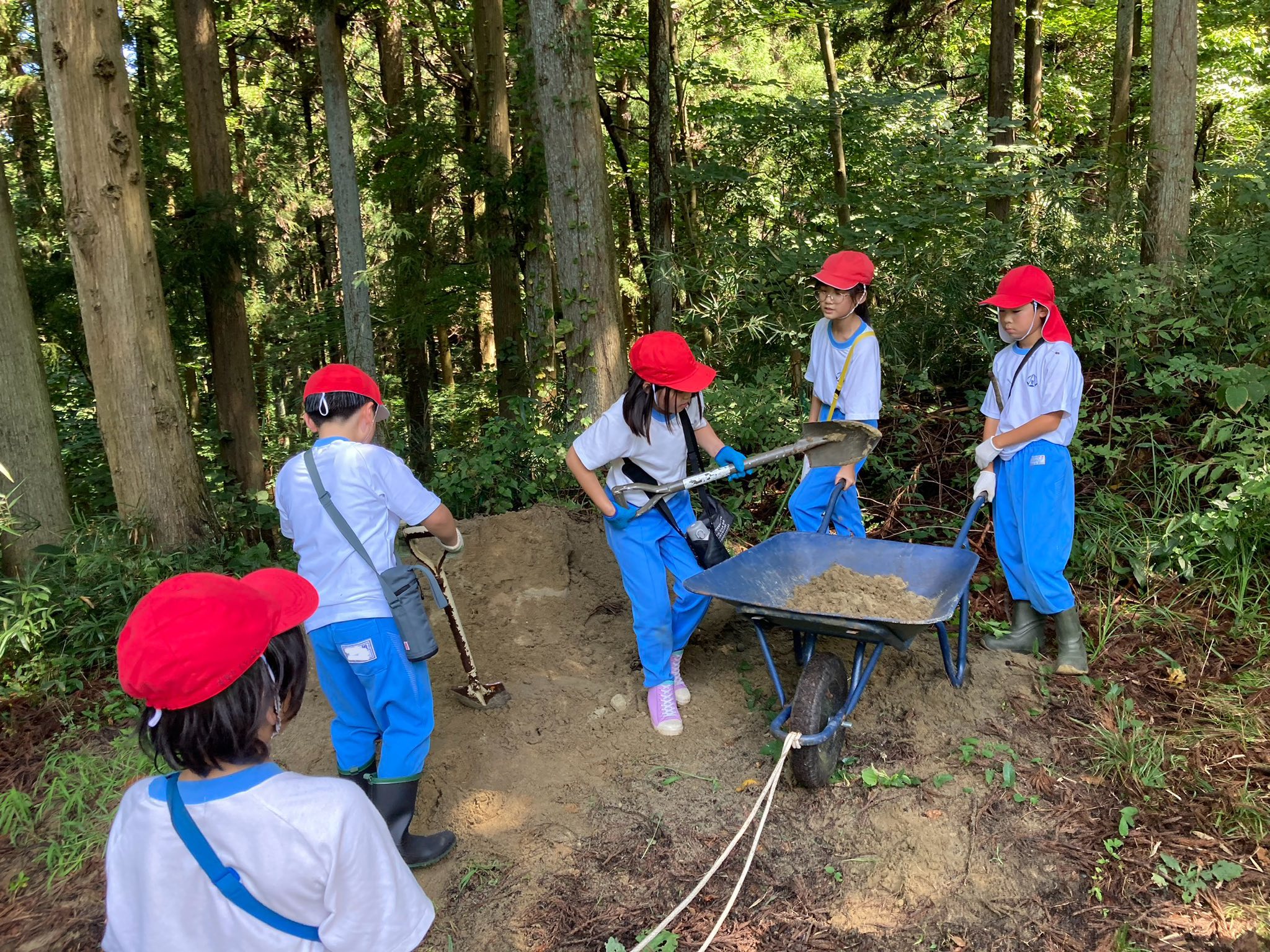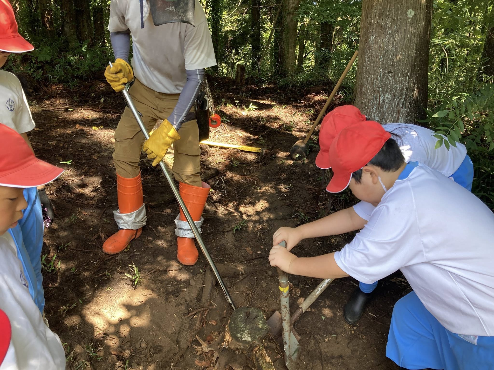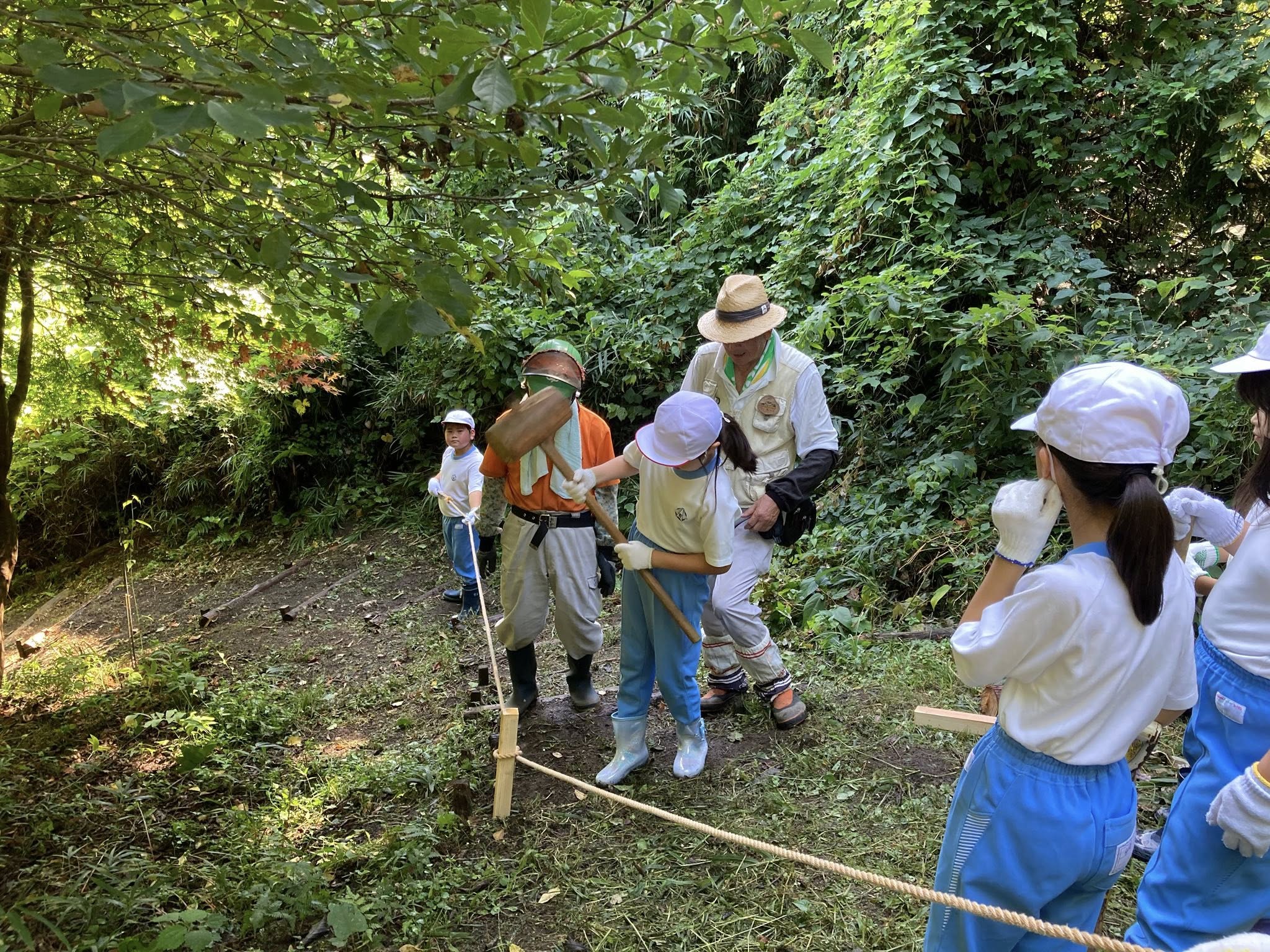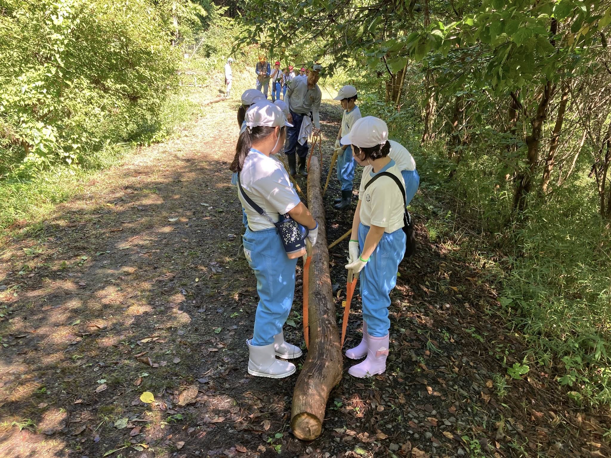 朝方の雨模様が嘘のような陽射しの中での活動とはなりましたが、丸太引きや切り株の抜根等、班で力を合わせて作業する子ども達の姿が印象的でした。