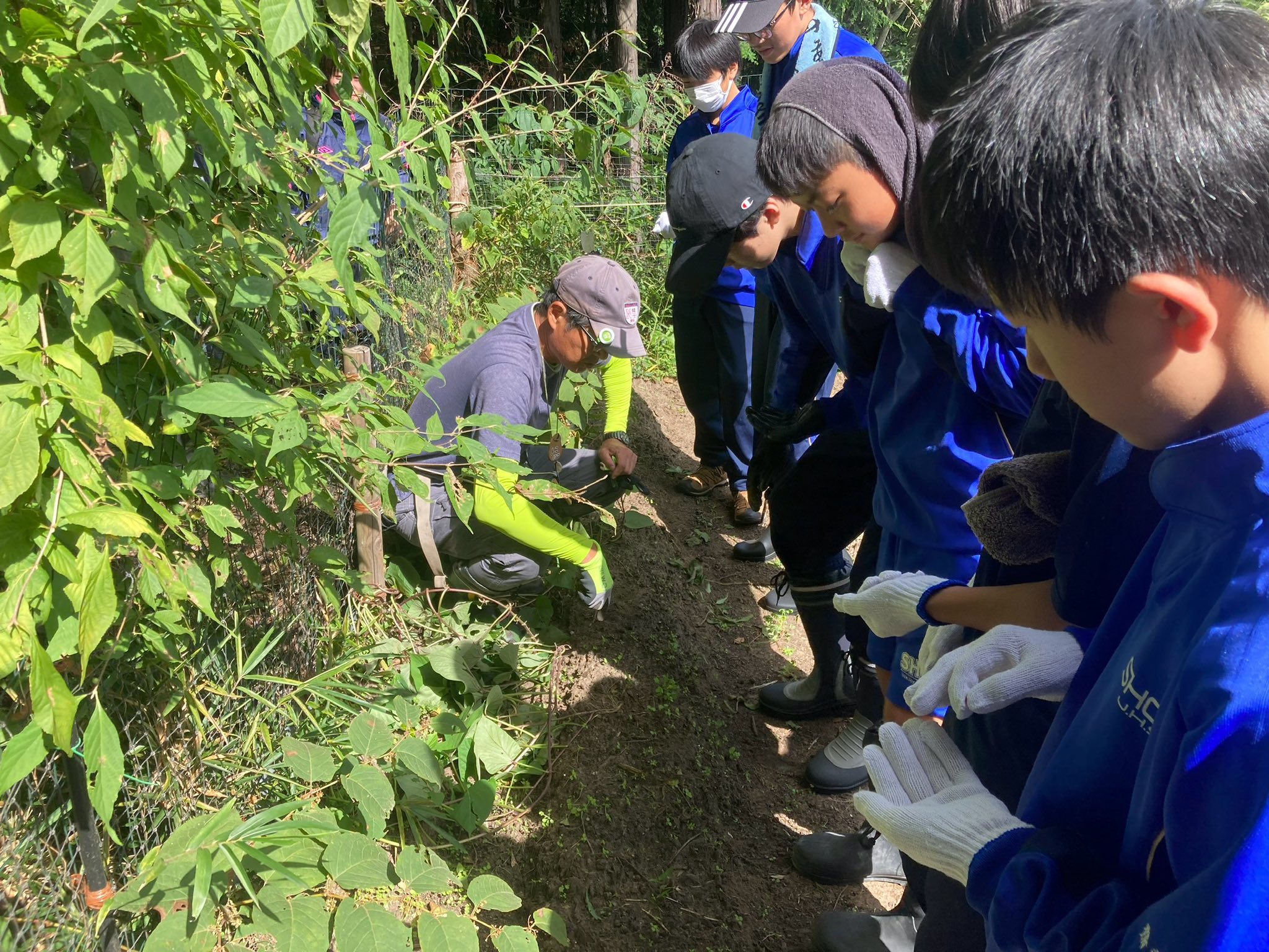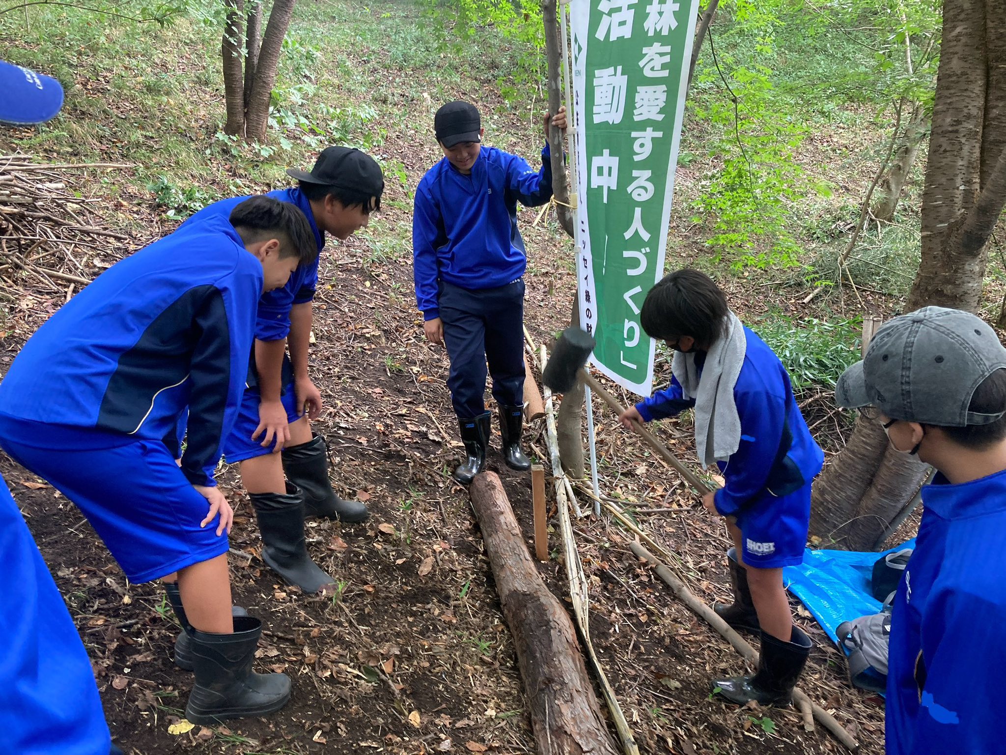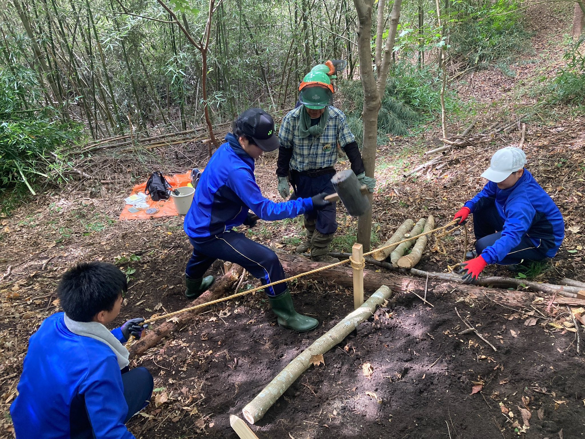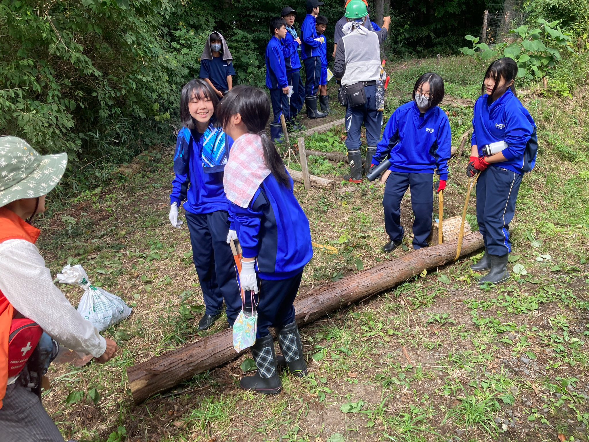 遊歩道整備で使用する横木を自分達で運んだり、班で力を合わせて切り倒した竹を処理する姿は大人顔負けでした。
