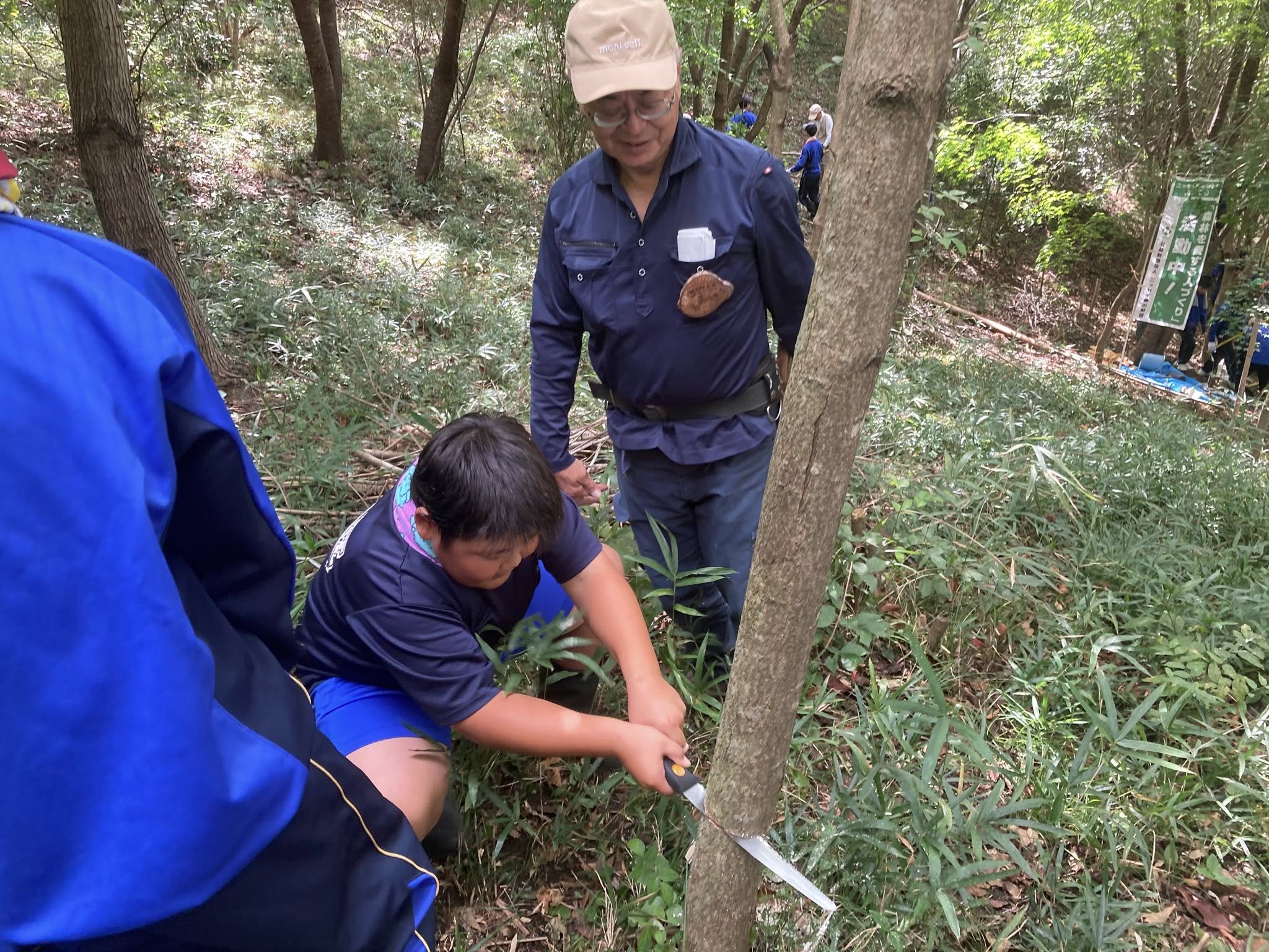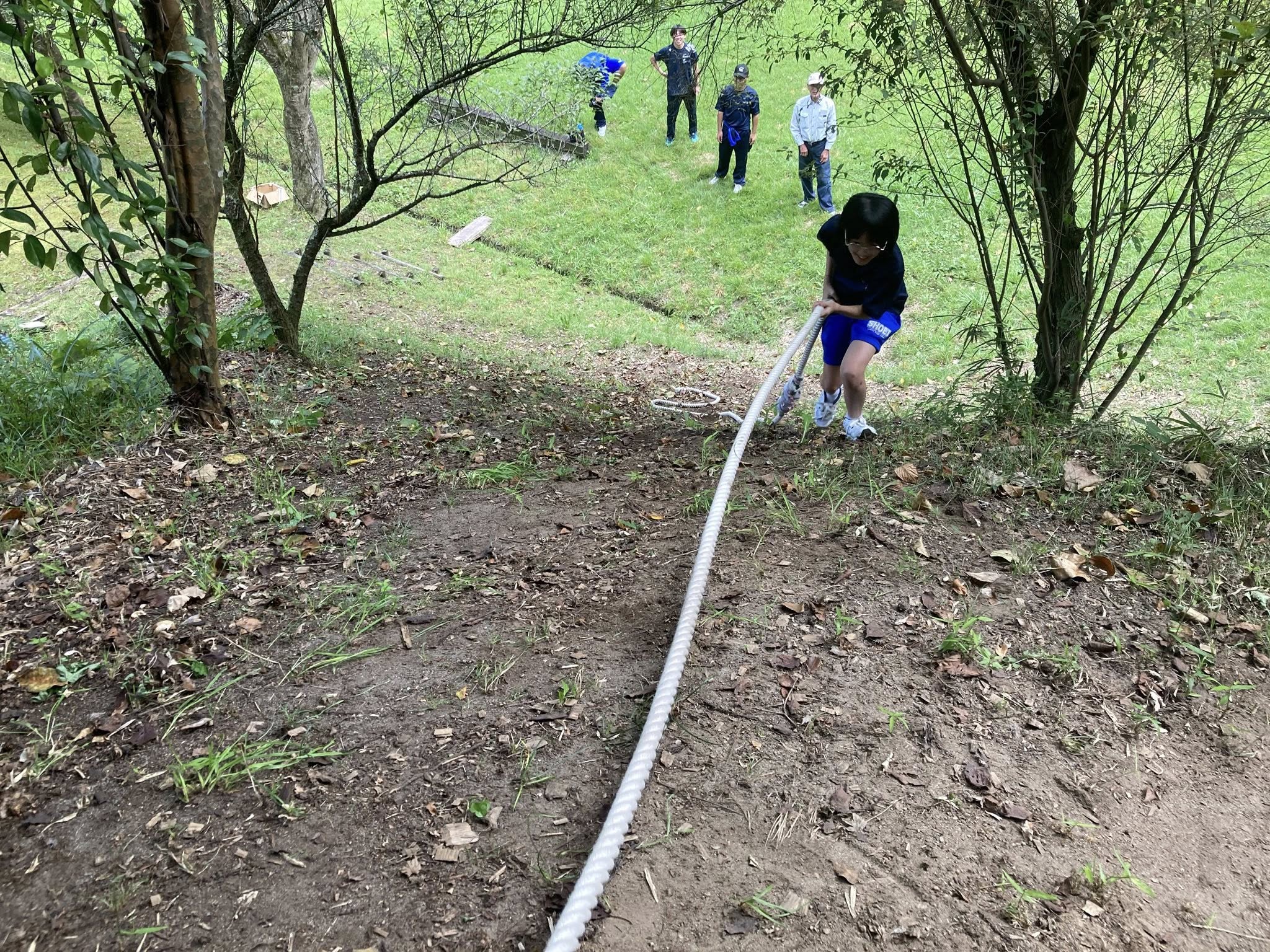 整備作業だけではなく、葉っぱ遊びや木登りに挑戦したり、ロープワークの練習をしたりもしました。